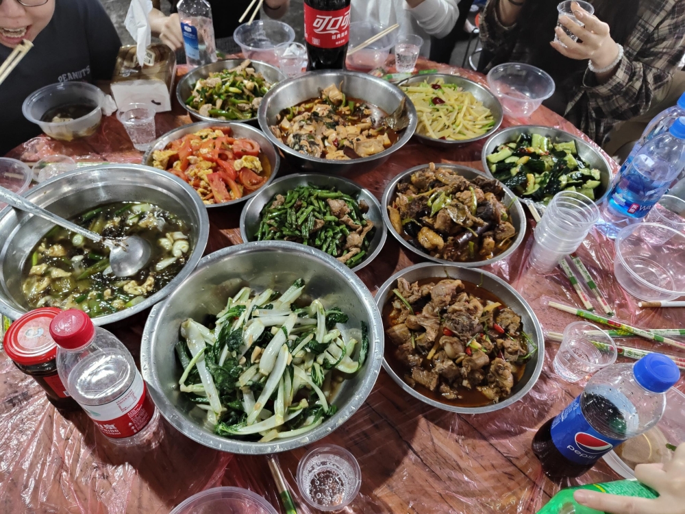 玩了游戲,又做飯,幾個小時的時間下來,大家也都餓了,飯菜一做好,就直接開吃啦