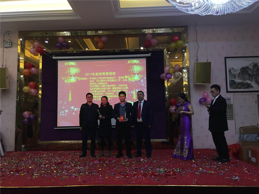 另外為激勵大家過去一年的辛苦付出,公司還特別準備“2017年度優(yōu)秀員工獎”、“2017年度優(yōu)秀管理獎”、“2017年度銷售冠軍獎”等各獎項頒發(fā)于員工,激勵大家來年再創(chuàng)輝煌。